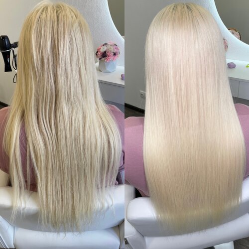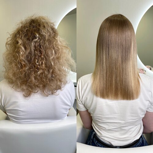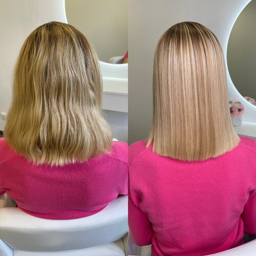 Хочу сказать огромное спасибо Катюше! Еще два года назад мои волосы напоминали сено, думала с блондом ничего нельзя сделать, но попав к Кате, после кератинового выпрямления волосы стали красивыми, прямыми, мягкими, живыми, и это блонд! Удалось отрастить длину. Про утюжок забыла вообще! Теперь только к Кате! 🌺